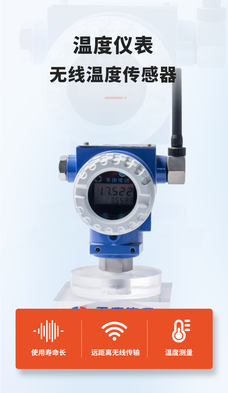 無線溫度傳感器是一款可電池供電、超低功耗、超長電池壽命、遠(yuǎn)距離無線信號傳輸功能的溫度檢測儀器,可實現(xiàn)各種液體、氣體或蒸汽的溫度測量。防震、防潮、適應(yīng)嚴(yán)酷的野外環(huán)境。無線傳輸方式有SWSN高效協(xié)議傳輸方式、LORA擴(kuò)頻無線傳輸方式、NB-IOT網(wǎng)絡(luò)傳輸方式和4G全網(wǎng)通傳輸方式四種,分別具有超低功耗和超強(qiáng)信號穿透力的特點(diǎn)。