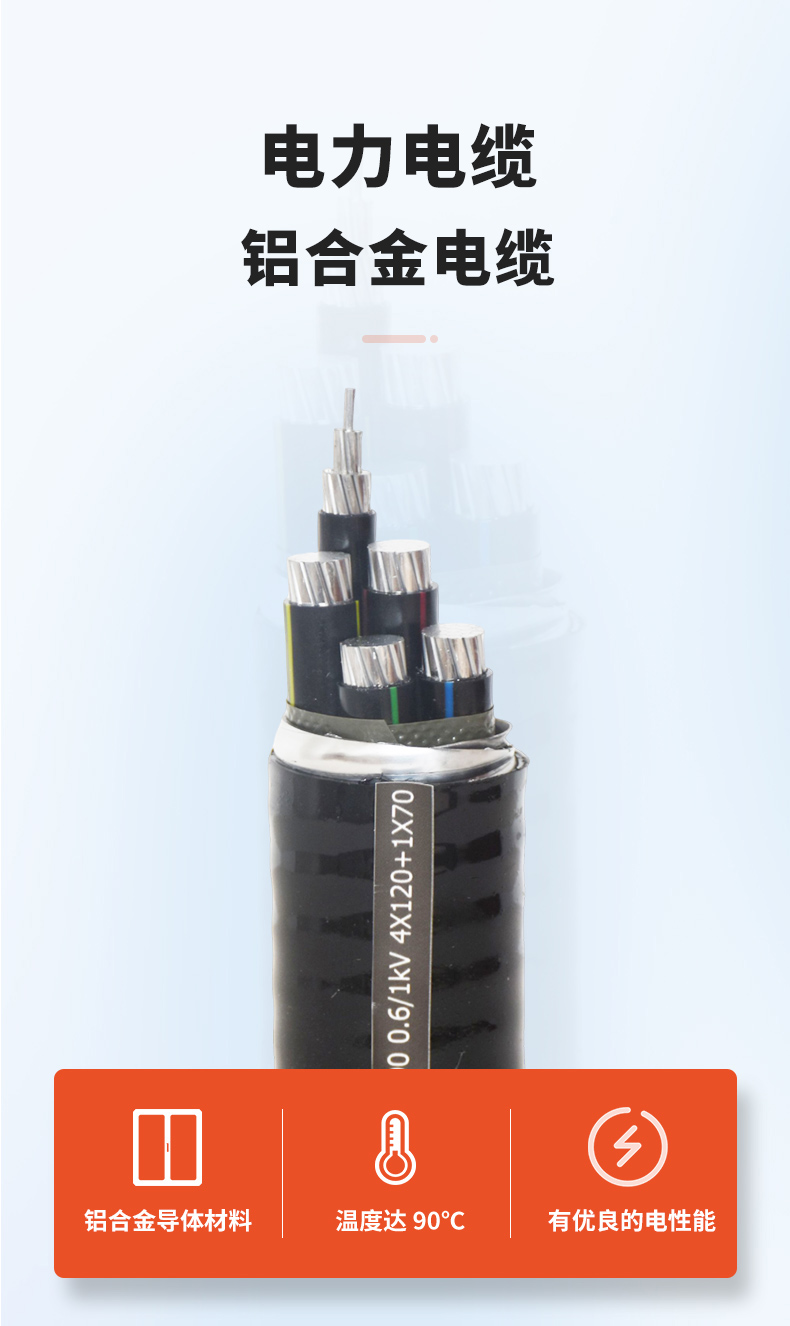鋁合金電力電是以AA8030系列鋁合金材料為導體,采用特殊緊壓工藝和退火處理等先進技術制造的新型材料電力電纜。該電纜具備良好的機械性能和電性能,了 座用于高層建筑、地鐵、機場、電廠、輸變電站、石油、化工、核電站等等。在滿足同等電氣性能的煎提下,使用鋁金電重量是銅芯電纜的一-半,其截面是傳統(tǒng)銅芯電纜的1.1~1.25倍,價格比傳統(tǒng)的銅芯電纜低20-40%。